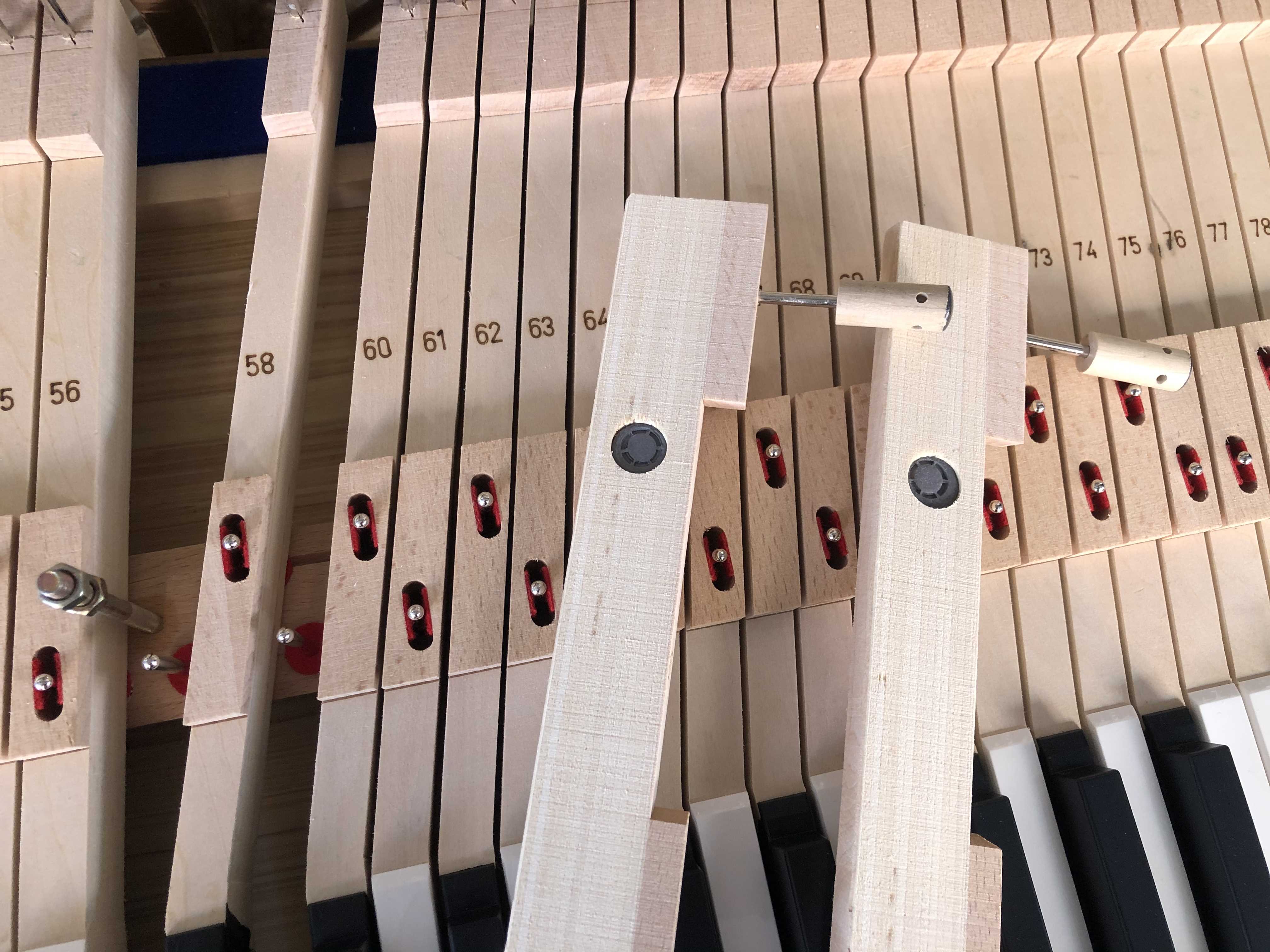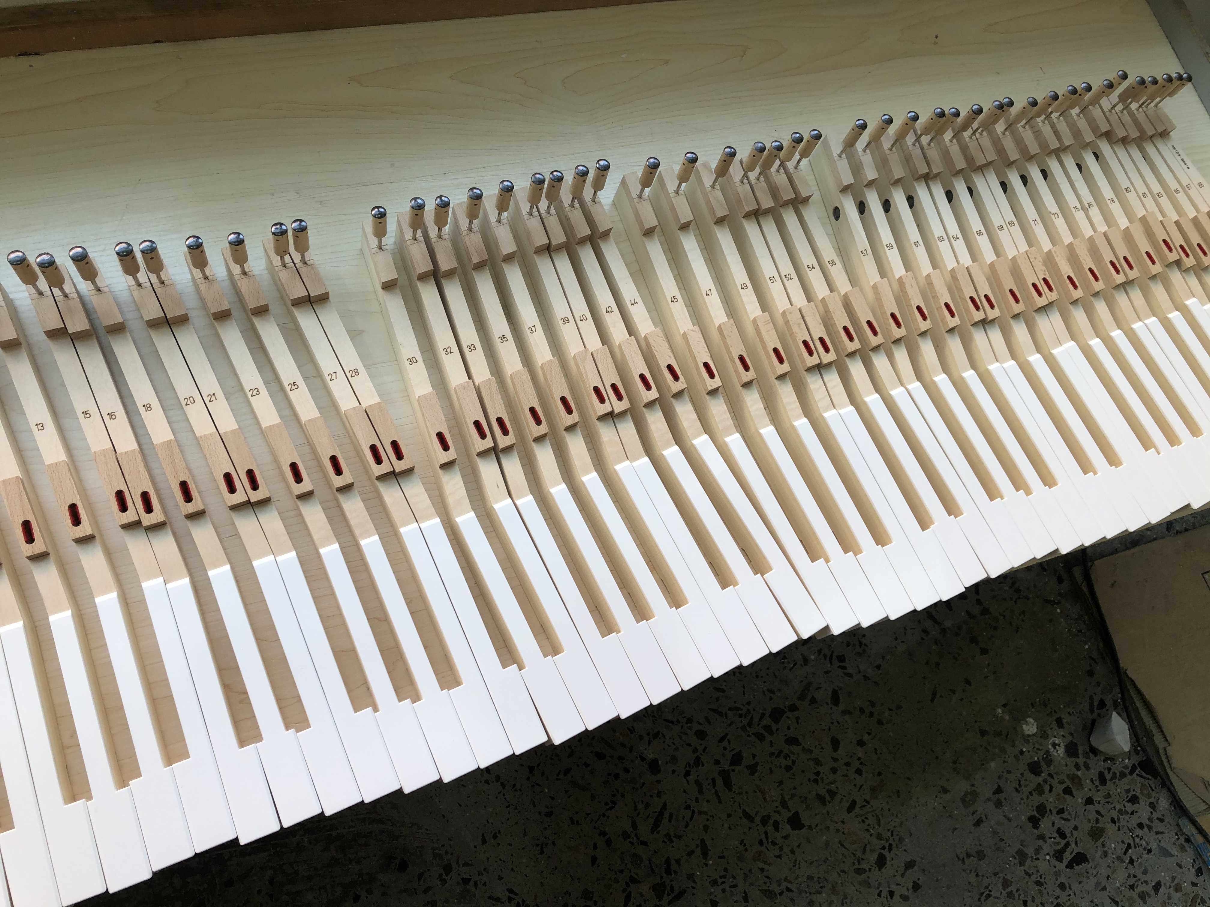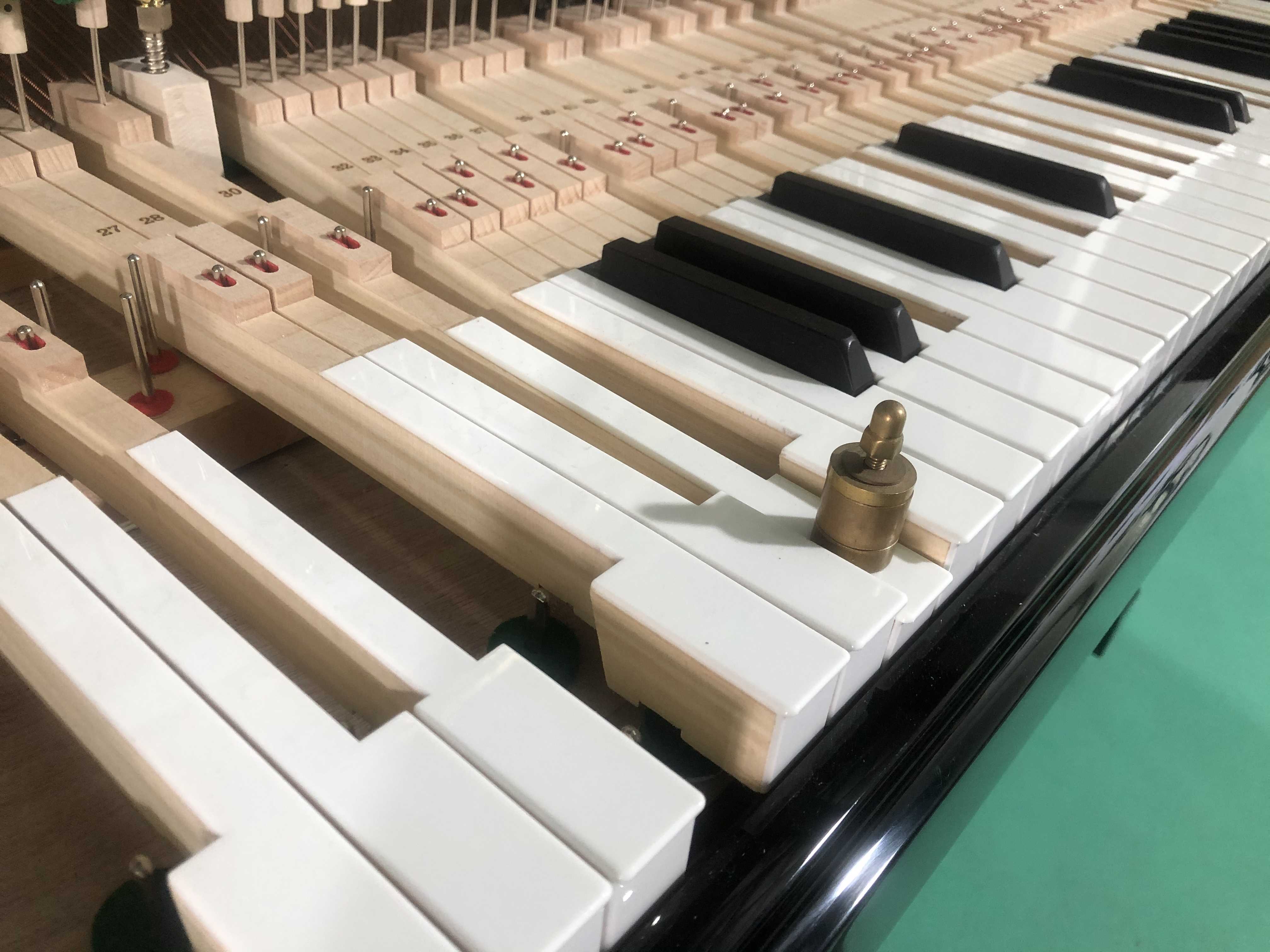 To get the best hand feeling for players, keyboards need to be weighed with lead, hence each keyboard needs to be removed and inspected before delivery by removing excess burrs or wood spines with sandpaper