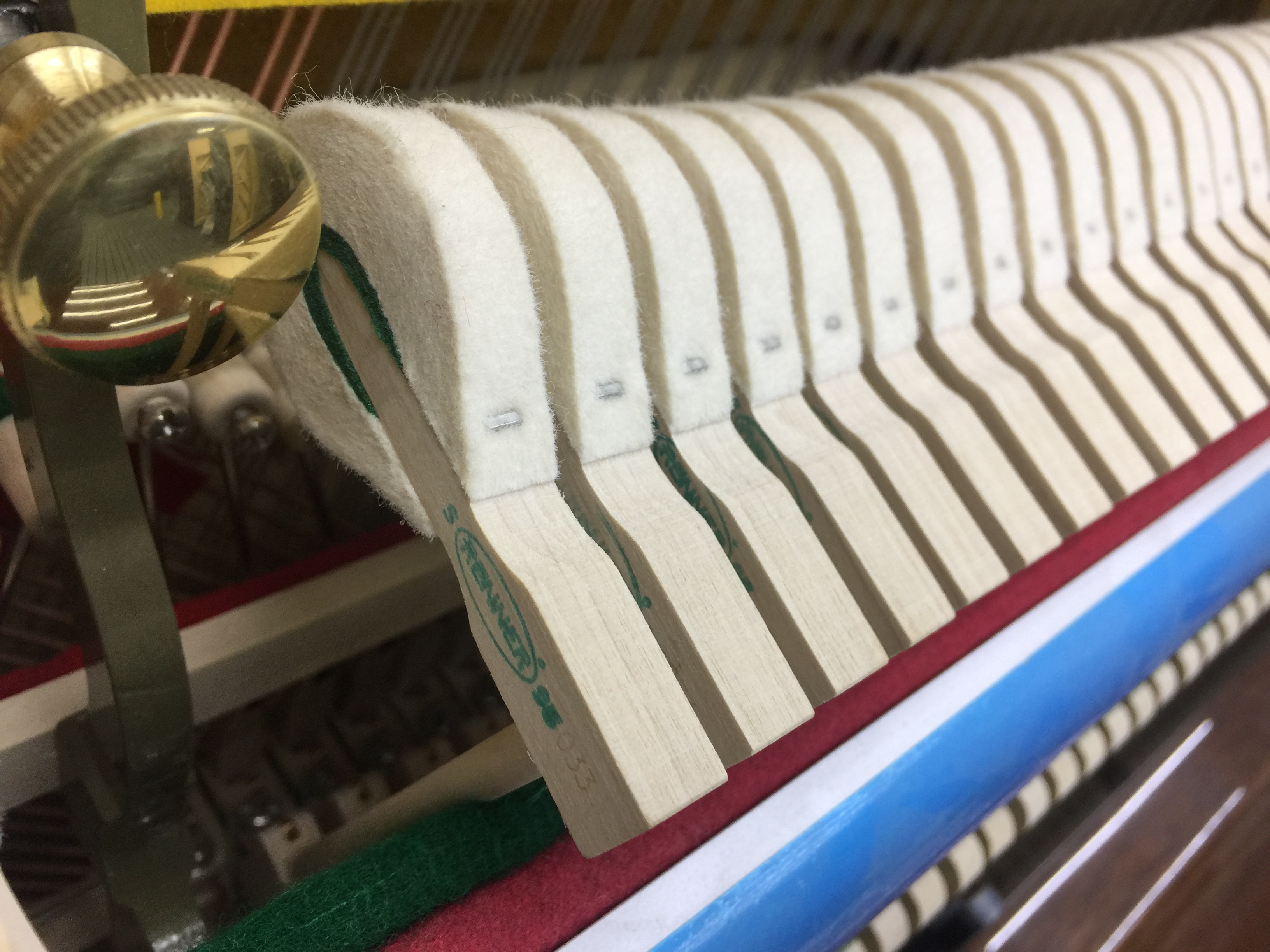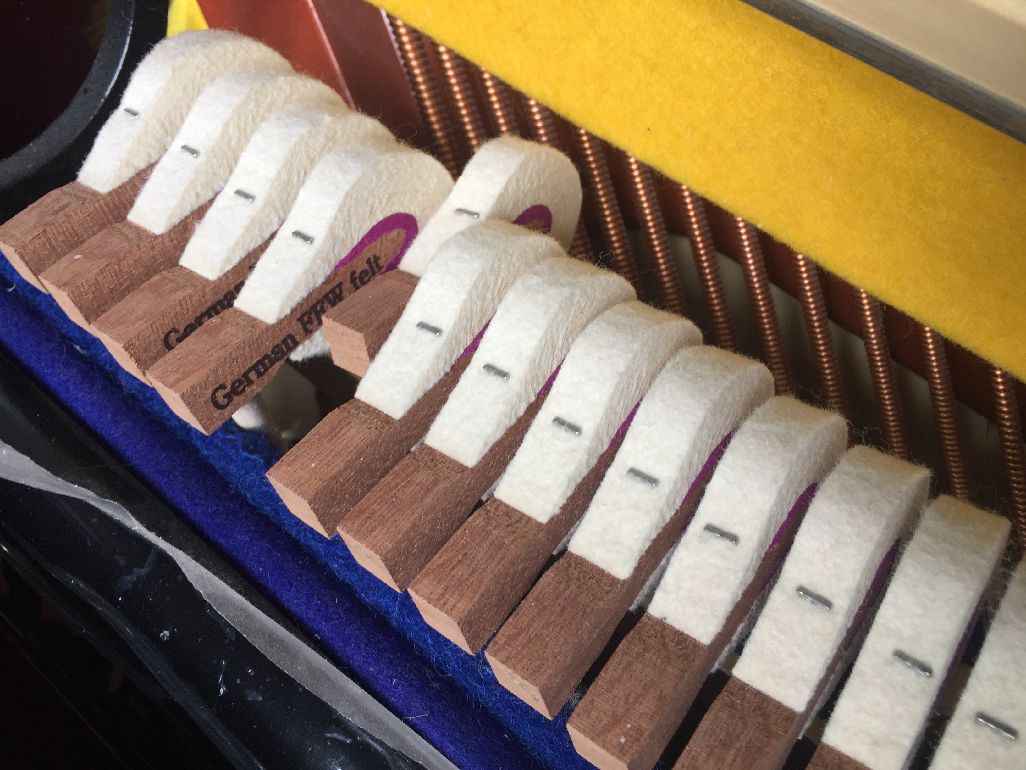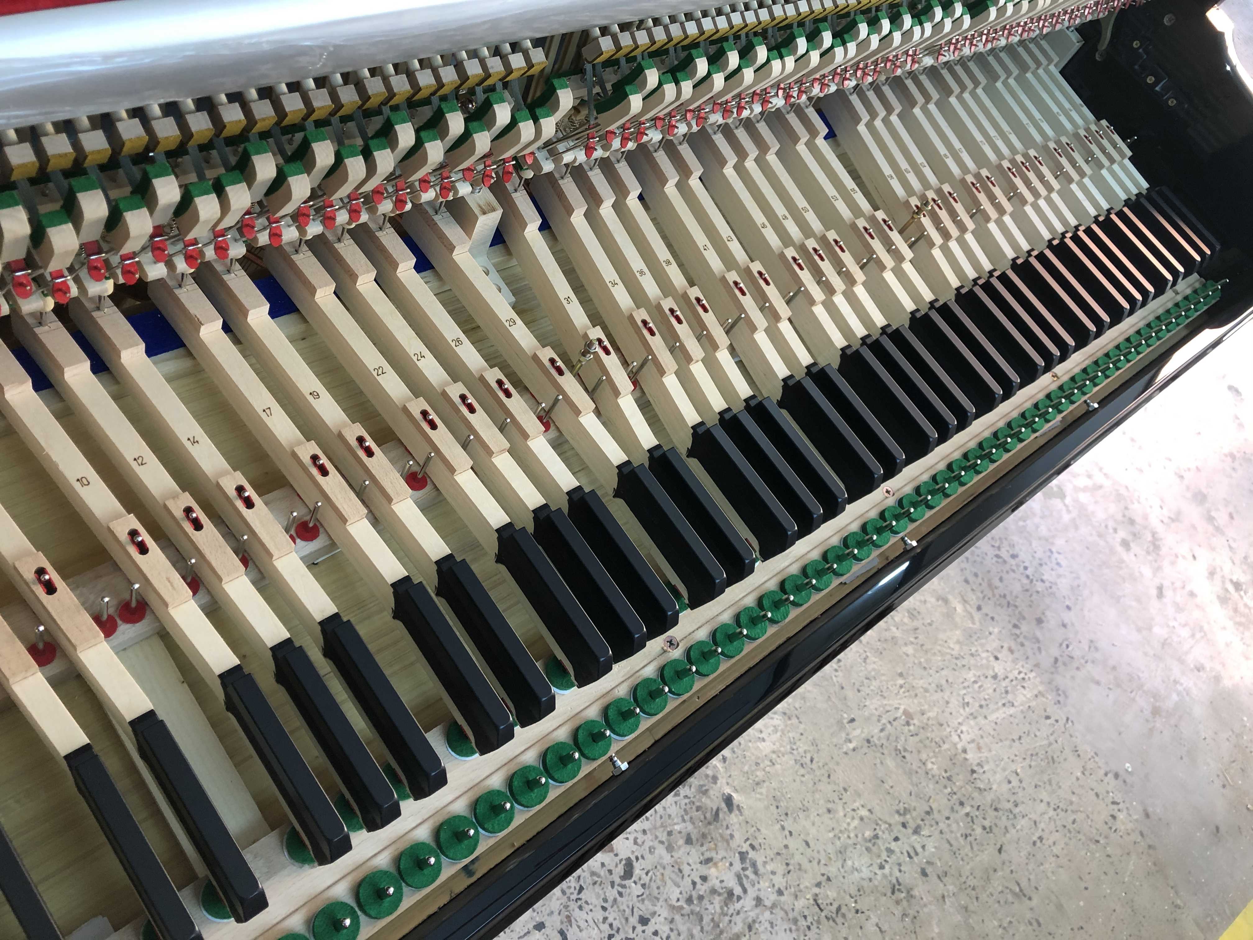To get the best hand feeling for players, keyboards need to be weighed with lead, hence each keyboard needs to be removed and inspected before delivery by removing excess burrs or wood spines with sandpaper
